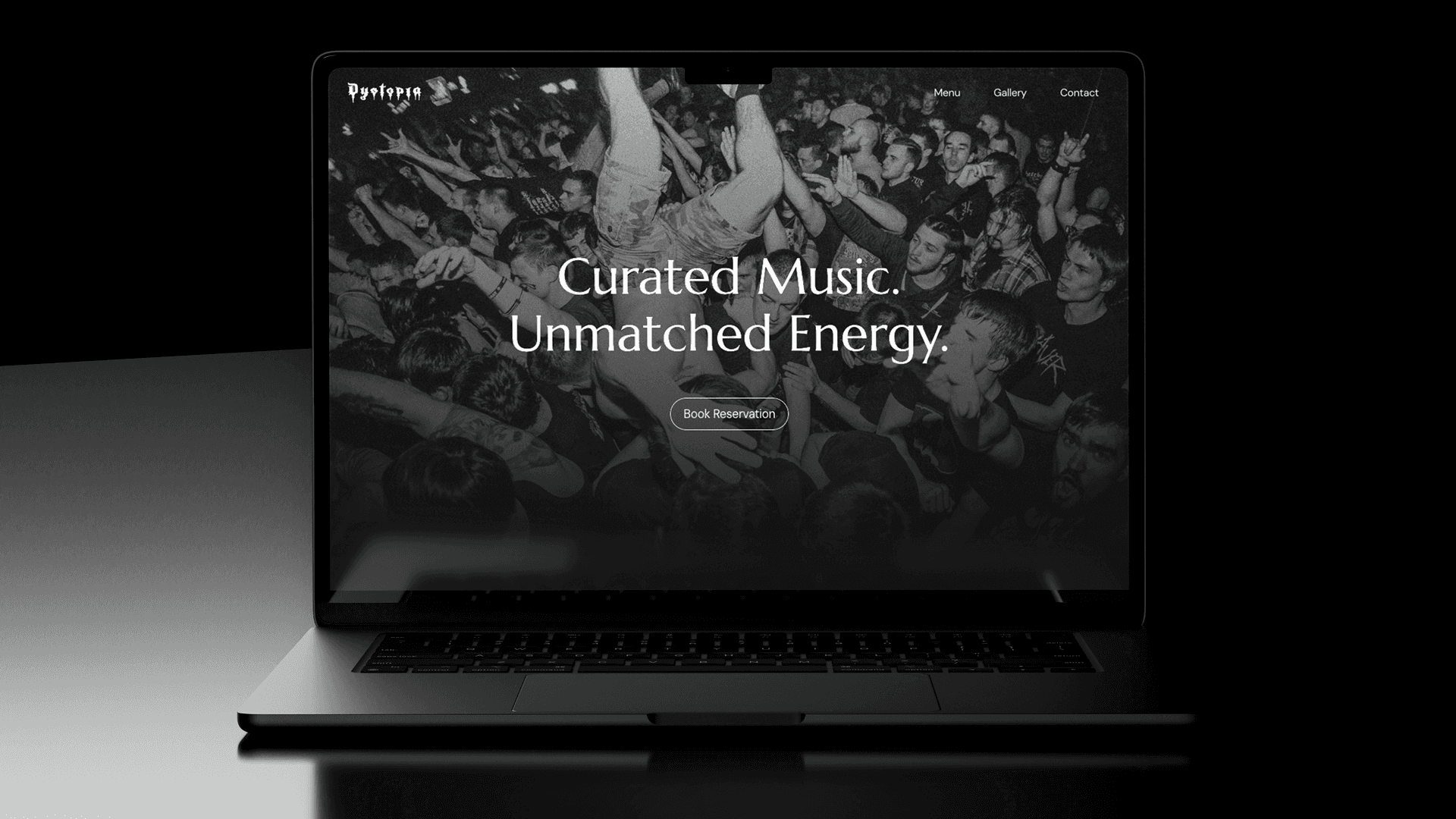 Dystopia needed a website that reflected the raw, underground energy of their music-driven bar while still being easy to navigate. The challenge was creating a digital experience that felt gritty and immersive without sacrificing usability or clarity for visitors.