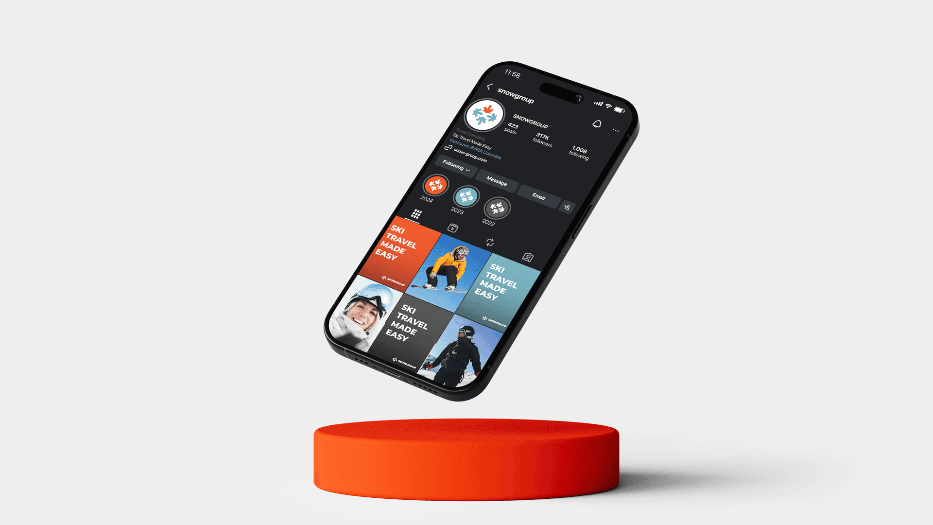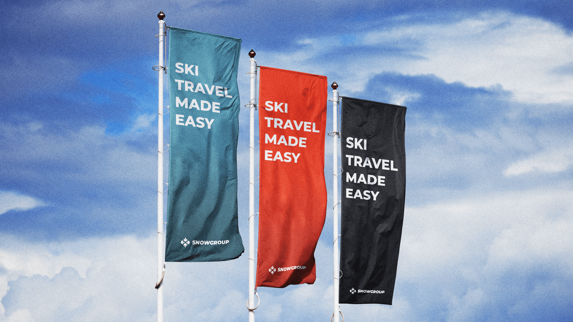 I built a brand system that feels bold, modern, and movement driven. The visual language combines crisp typography, a distinct color palette, and energetic imagery to express the ease and momentum of Snowgroup’s platform. Every element works together to position the brand as the go to hub for seamless ski travel.